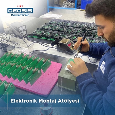 Geosis bünyesindeki Elektronik atölyesinde kızdırma kontrol kutusu, regulator, alternator, tesisat kabloları başta olmak üzere orta ve ağır vasıta araçlar için kullanılan tüm elektronik parçaları yüksek kalite standartlarında ve uzman ekibimizle gerçekleştirilmektedir.